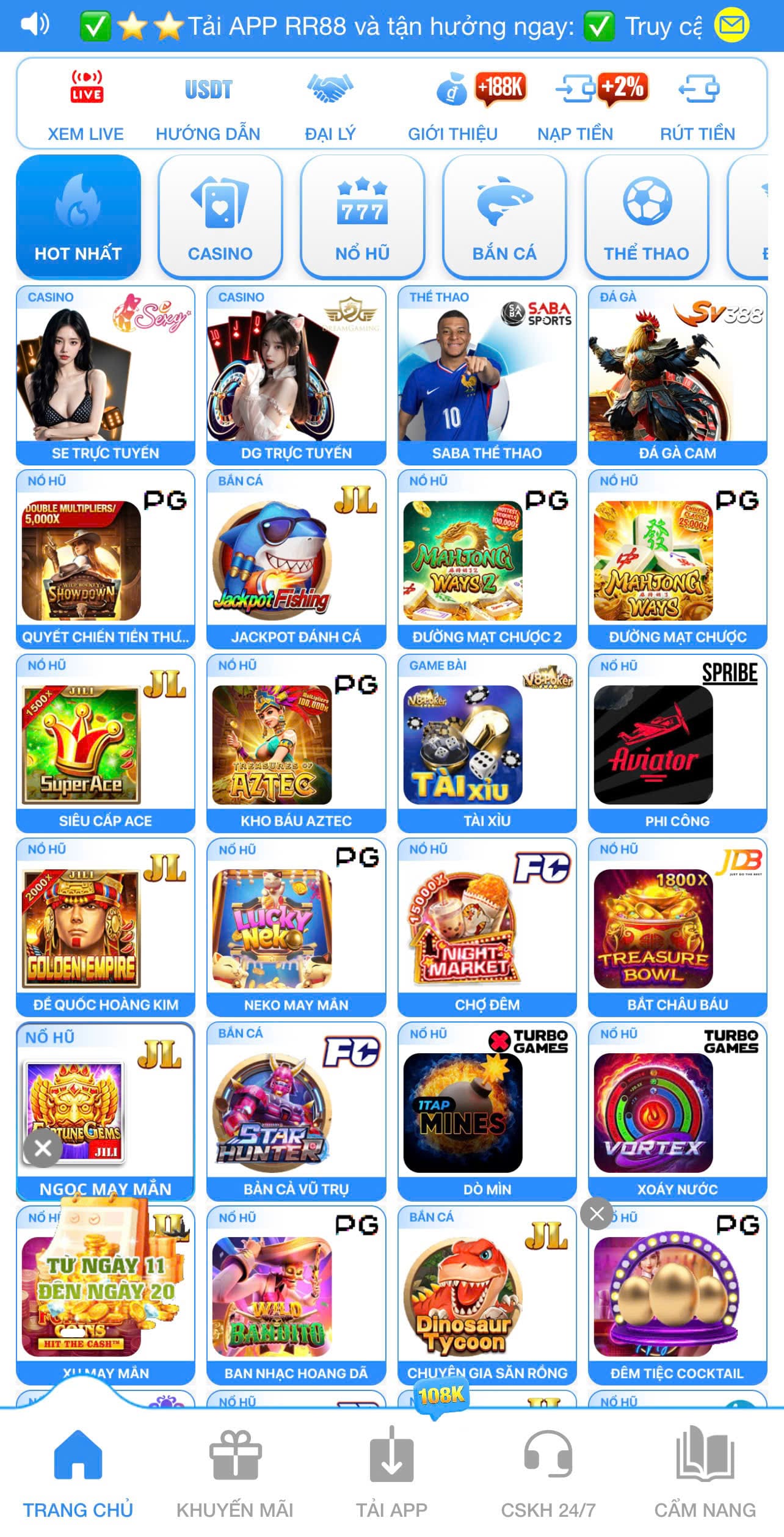Nhà cái rr2299 .com hoàn trả 2.0% số tiền mọi lệnh cược của hội viên, dù cược thắng hay thua. Ngoài ra, người chơi có thể rút tiền mọi lúc, không cần thực hiện thao tác đặt cược.